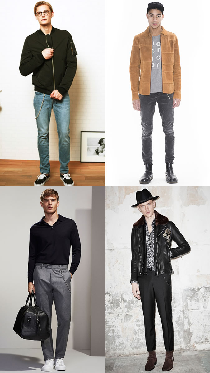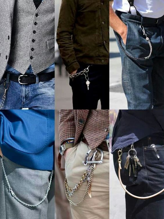 Η αλυσιδίτσα που κρέμεται στο πλάι και συγκρατεί τα κλειδιά ή το πορτοφόλι σας είναι πολύ στη μόδα. Μάλιστα εξίσου στη μόδα είναι και άλλες εκδοχές του συγκεκριμένου αξεουάρ που δεν είναι φτιαγμένες μόνο από μεταλλικές αλυσίδες, αλλά φέρουν δερμάτινες λεπτομέρειες ή είναi φιταγμένες από δερμάτινα κορδόνια.