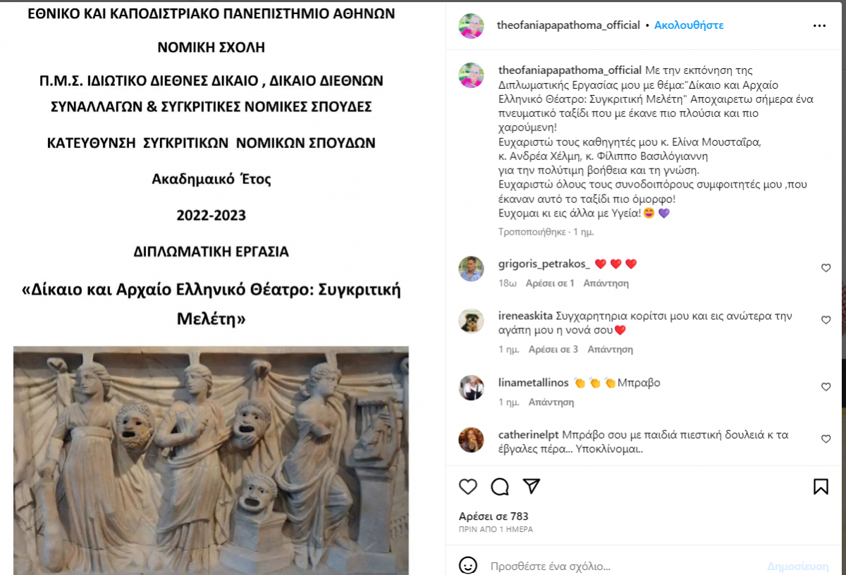 Και μπορεί πλέον η Θεοφανία Παπαθωμά να μην ακολουθεί τον Γρηγόρη Πετράκο στα social media, ωστόσο εκείνος, όχι μόνο την ακολουθεί, αλλά έκανε και ένα τρυφερό σχόλιο στην τελευταία της ανάρτηση μέσω της οποίας η ηθοποιός ανακοίνωνε την απόκτηση του μεταπτυχιακού της.