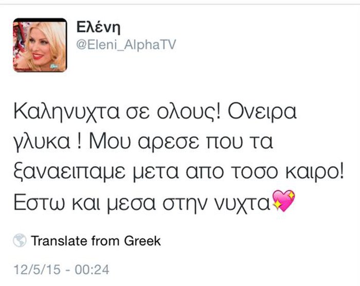 Tο Twitter επέλεξε για ακόμα μία φορά η γνωστή παρουσιάστρια για να μιλήσει με τους θαυμαστές της, λίγες ώρες μετά την τηλεοπτική της επιστροφή.