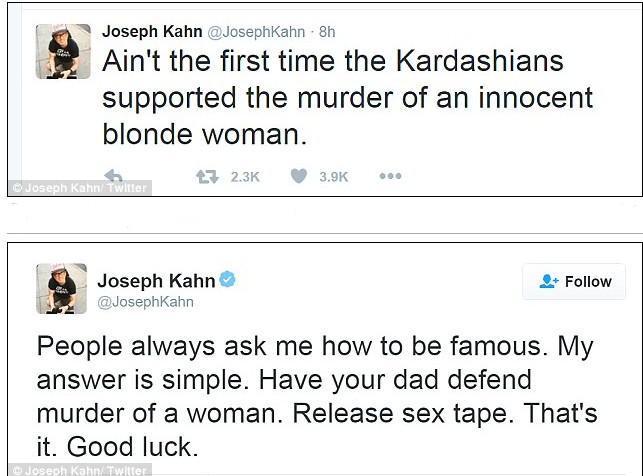 Ούτε λίγο, ούτε πολύ έγραψε πως "αυτή δεν είναι η πρώτη φορά που οι Kardashians στηρίζουν τη δολοφονία μιας αθώας ξανθιάς", αναφερόμενος στο γεγονός πως ο πατέρας της Kim Kardashian (Robert Kardashian) ως δικηγόρος είχε υπερασπιστεί το 1995, τον φίλο του (και νονό της Kim) OJ Simpson, στην θρυλική υπόθεση δολοφονίας της "ξανθιάς" συζύγου του Nicole (και φίλης της μάνας της Kim - Chris Jenner). Η πολύκροτη τότε υπόθεση είχε απασχολήσει τους πάντες στις ΗΠΑ και από εκεί έγινε γνωστή και η οικογένεια Kardashian, αφού η δίκη μεταδόθηκε από τα τηλεοπτικά μέσα. Μάλιστα φέτος προβλήθηκε και η σειρά People v OJ Simpson που σάρωσε τις υποψηφιότητες για Χρυσές Σφαίρες.