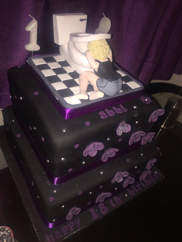 Η μαμά ονομάζεται Sharon Price και προφανώς δεν χάρηκε καθόλου όταν πριν από κάποιες εδβομάδες είδε την 17 ετών κόρη της Abbi να επιστρέφει μεθυσμένη στο σπίτι και να κάνει εμμετό στην τουαλέτα. Τότε τράβηξε αυτή τη φωτογραφία και της έλεγε πως θα βρει έναν τρόπο με αυτή τη φωτογραφία να της θυμίζει πόσο ρεζίλι γίνεται κανείς όταν πίνει. Βέβαια ούτε η Abbi περίμενε αυτό που ακολούθησε. Η μητέρα της έκανε ειδική παραγγελία την τούρτα γενεθλίων της κόρης της για τα 18α γενέθλιά της και έβαλε πάνω της μία αναπαράσταση της φωτογραφίας. Η εν λόγω τούρτα έχει ενθουσιάσει τους χρήστες του Διαδικτύου και το ποστ στο twitter (το ανέβασε η 18χρονη Abbi) έχει πλέον μερικές δεκάδες χιλιάδες κοινοποιήσεις, κυρίως από άλλες μαμάδες που βρήκαν το τρολάρισμα της μάνας στην κόρη μάλλον αστείο και σίγουρα αποτελεσματικό.