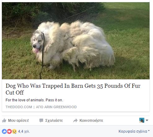 Ο συγεκριμένος σκύλος ζούσε για 7 χρόνια παρατημένος και εγκλωβισμένος σε έναν αχυρώνα, όπου οι πρώην ιδιοκτήτες του του έδιναν μόνο ελάχιστη τροφή και λίγο νερό. Κάποια στιγμή οι πρώην ιδιοκτήτες χρειάστηκε να λείψουν και ζήτησαν από ένα νεαρό ζευγάρι να εφοδιάζει με λίγη τροφή στον σκύλο. Το ζευγάρι όταν είδε το χάλι του σκύλου ήρθε σε επαφή με άλλους φιλόζωους και τελικά ήρθαν σε επαφή με το Big Fluffy Dog Rescue των ΗΠΑ και χάρη στη συλλογική προσπάθεια πολλών, ο Lazarus απομακρύνθηκε από τα αφεντικά του. O σκύλος που ζούσε σε άθλιες συνθήκες σε αγρόκτημα στις ΗΠΑ, είχε τόσο μεγάλο, μακρύ και ακούρευτο τρίχωμα που πλέον δεν μπορούσε να κινηθεί, τα πόδια του είχαν ατροφήσει, ήταν υποσιτισμένος και αφυδατωμένος και είχε αρχίσει να εμφανίζει έλκη στο δέρμα του. Πλέον, όμως είναι κοντοκουρεμένος (και αγνώριστος!) και υγιής και αναζητά νέο σπίτι με χιλιάδες υποψήφιους να έχουν εκδηλώσει ενδιαφέρον ειδικά αφού η ιστορία του έγινε viral στο Facebook και προβλήθηκε και απο τα αμερικανικά τηλεοπτικά δίκτυα το τελευταίο 24ωρο. Παράλληλα ο Lazarus έχει γίνει το νέο σύμβολο... υπενθύμισης στους ιδοκτήτες σκύλων πως πρέπει να κουρεύουν τακτικά τα κατοικίδιά τους.